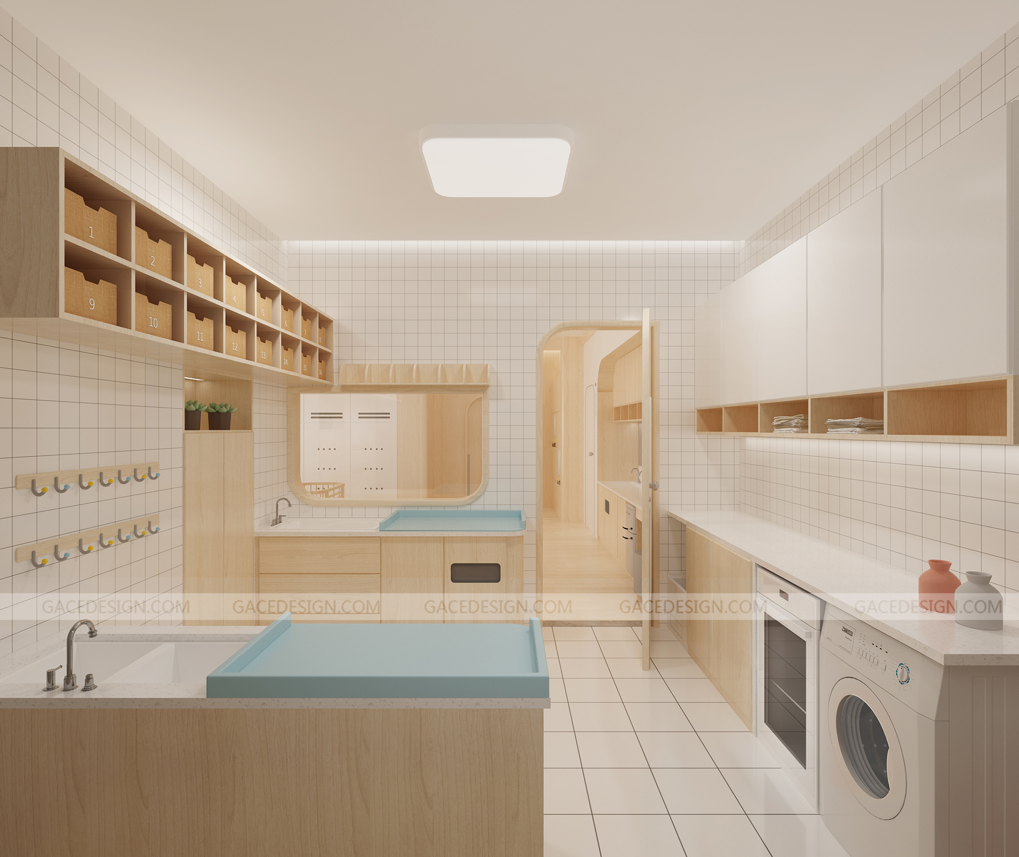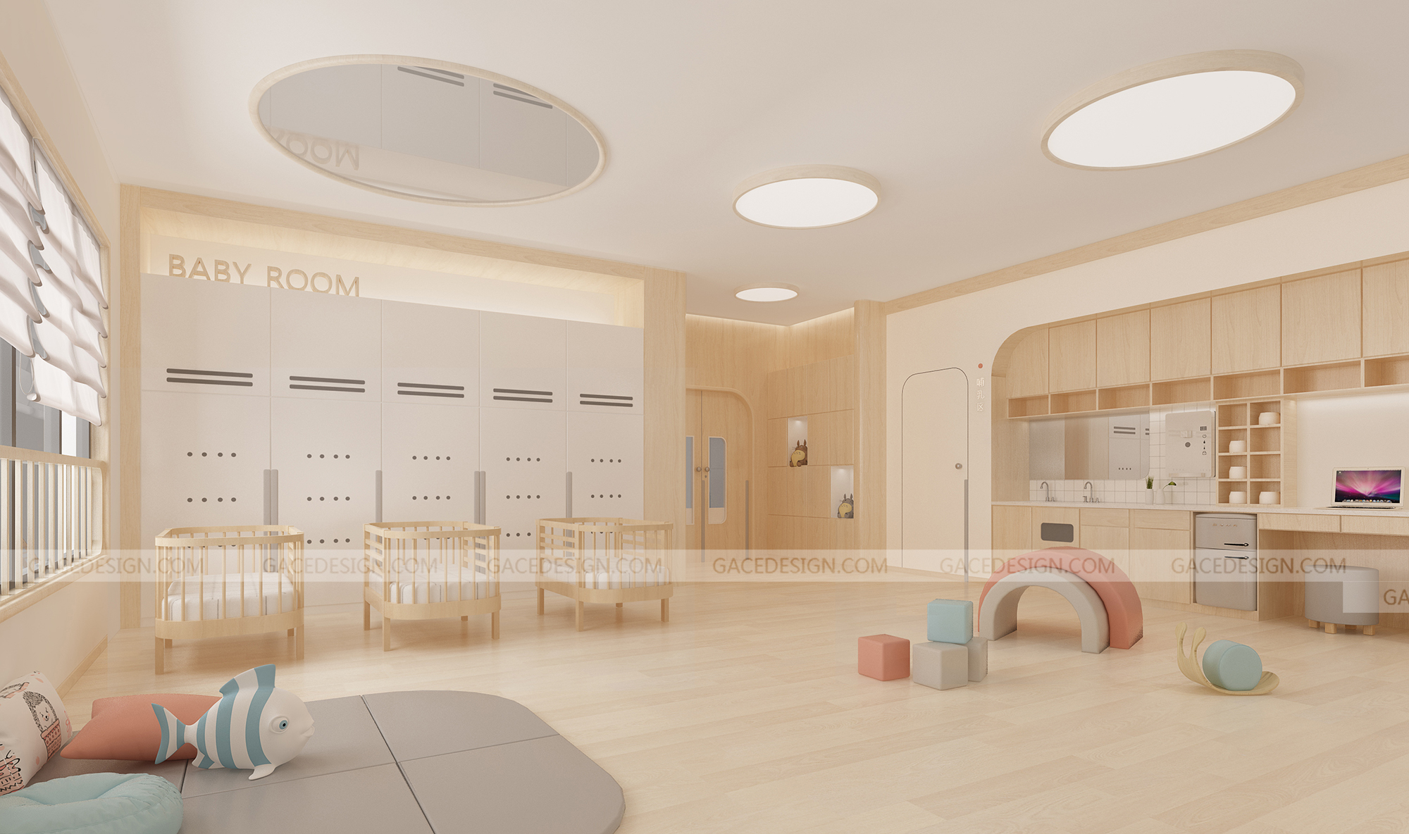 設(shè)計(jì)概括:這是我們幫啟思頓托育園設(shè)計(jì)的旗艦店,面積達(dá)到1000平以上,作為中山市高標(biāo)準(zhǔn)的示范性托育園,我們?cè)谠O(shè)計(jì)之前組織設(shè)計(jì)師進(jìn)行跟崗觀察,學(xué)習(xí)守護(hù)型嬰幼兒保育等系列保育書。考慮到保育員在操作層面上的便捷性,我們進(jìn)行了場(chǎng)景模擬,把操作層面所涉及的柜體以及路徑進(jìn)行了系統(tǒng)性整理。考慮到嬰幼兒在保育園的心理狀態(tài)以及發(fā)展心理學(xué)和空間敏感,我們定位這個(gè)項(xiàng)目是孩子的第二個(gè)家。是一家值得爸爸媽媽愿意托付的托育園。