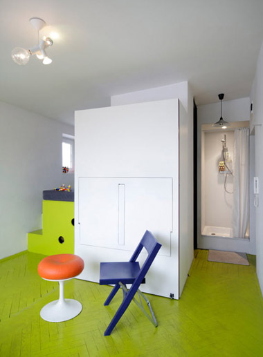 生活在一個(gè)窄小的空間里,要遠(yuǎn)離沮喪心情,最好的方式就是將它打點(diǎn)的精彩有趣。波蘭建筑師 Jakub Szczesny在設(shè)計(jì)一處位于波蘭城區(qū)的21.5平米空間時(shí)就做到了這一點(diǎn)。