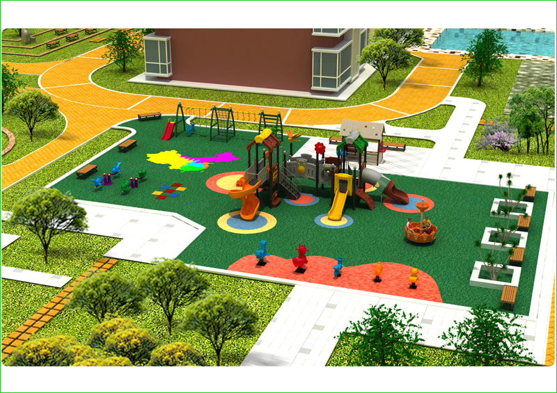 另一方面,戶外場地也可分為三部分:公共活動區(qū)、幼兒活動區(qū)、綠化區(qū)。公共活動區(qū)主要包括幼兒園進門處、道路、宣傳展示區(qū)、教師車棚等;幼兒活動區(qū)包括操場、大型玩具區(qū)、沙池、種殖區(qū)等。綠化區(qū)包括圍墻內外的平面綠化區(qū)以及樓體、圍墻上面的立體綠化區(qū)。 幼兒園進出路線和出入口也要劃分主次,如后勤服務走專用通道。