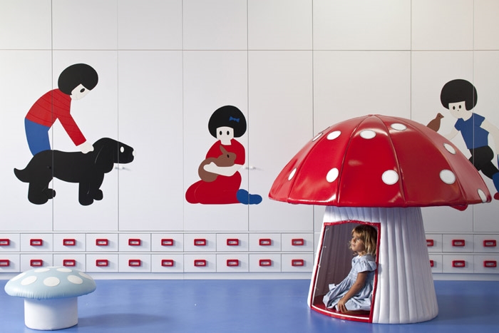 在堅(jiān)持富有想象力的創(chuàng)意設(shè)計(jì)時(shí),同時(shí)全面考慮使用對(duì)象,材料方面使用經(jīng)濟(jì)型的PVC地板以及人造革材料,家具方面則是高度符合兒童人體工程學(xué),可以方便去拿玩具,而且還具體的設(shè)了有病床、蘑菇、房子、廚房、烤箱等等大玩具,可以讓孩子們?cè)诶锩孢^(guò)足扮家家的癮,每一個(gè)細(xì)節(jié)都做了考慮,蘑菇、木房則可以讓孩子們藏在里面能讓孩子們能得到更多的體驗(yàn),發(fā)揮想象力。