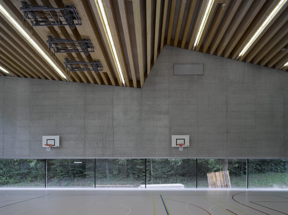 位于瑞士西南部瓦萊州首府Sion附近群山環抱的小村落Savièse之內,與群山遙相呼應坐落著教育設施,整座學校是由兩個巨大的體量組成,分為小學和幼兒園,另一個則是體育館。相互垂直的建筑形成了一個 L型,在契合現有室外活動場地的同時也圍合出一個可以眺望山谷與葡萄田地的小院落。極富趣味性的屋頂覆蓋了兩個空間,學校部分的屋頂更為傳統而體育館的屋頂則更隨意靈動。(幼兒園設計)