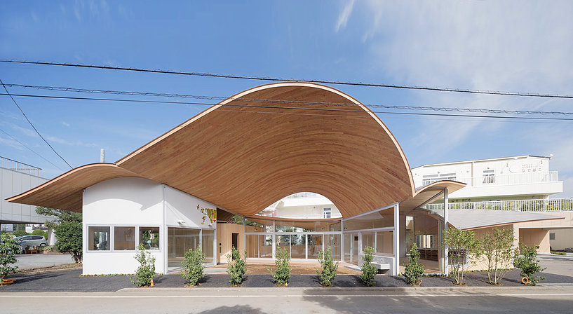 在日本距離富士山不會遠(yuǎn)名為山梨縣的一個(gè)寧靜的小鎮(zhèn),幼兒園方面邀請了tyo建筑事務(wù)所的設(shè)計(jì)師進(jìn)行幼兒園,設(shè)計(jì)師在實(shí)地考察深入分析之后設(shè)計(jì)了一個(gè)很有特點(diǎn)的大波浪屋頂?shù)挠變簣@,在幼兒園設(shè)計(jì)之初除了是要滿足當(dāng)?shù)氐挠變哼M(jìn)學(xué)的需求之外,還要起到一個(gè)社區(qū)聚集場所的功能,建筑師想將其打造成“村口大樹”的感覺。