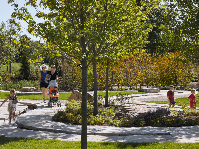 雷根斯坦學習園區是芝加哥植物園新設的環境探索中心和自然游樂場。這個占地六英畝的園藝園區作為科學園藝中心,為充滿活力的家庭社區服務,提供與自然環境的互動體驗,每年游客量超過12.5萬人。該設計促使家庭和各年齡段兒童參與豐富的戶外體驗,例如以探索為導向的學習和游戲,從而更深入了解生態系統。廣闊的花園提供各種自然體驗和探索活動,游客穿梭在草地、戲水小路、石塊、多樣的林地種植和柳枝隧道中。這個再生工程被設想為通向自然世界的門戶,一年四季提供探索與創造的機會。