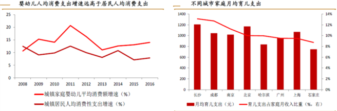 從產業生命周期角度看,兒童產業更傾向于常青產業,相當于其他產業(成長期-成熟期-衰退期)生命周期而言,常青產業的產業生命周期波動較小,支撐其長期處于成長與成熟期的是家庭收入增加后,引致型消費更愿意投在子女養育消費上,兒童在服裝、食品、藥品、保健品等方面的消費屬于剛性需求,為市場提供了持久動力。這一特征決定了兒童產業不是速生速滅的“快閃”產業,而是持續投資、長期回報的產業。