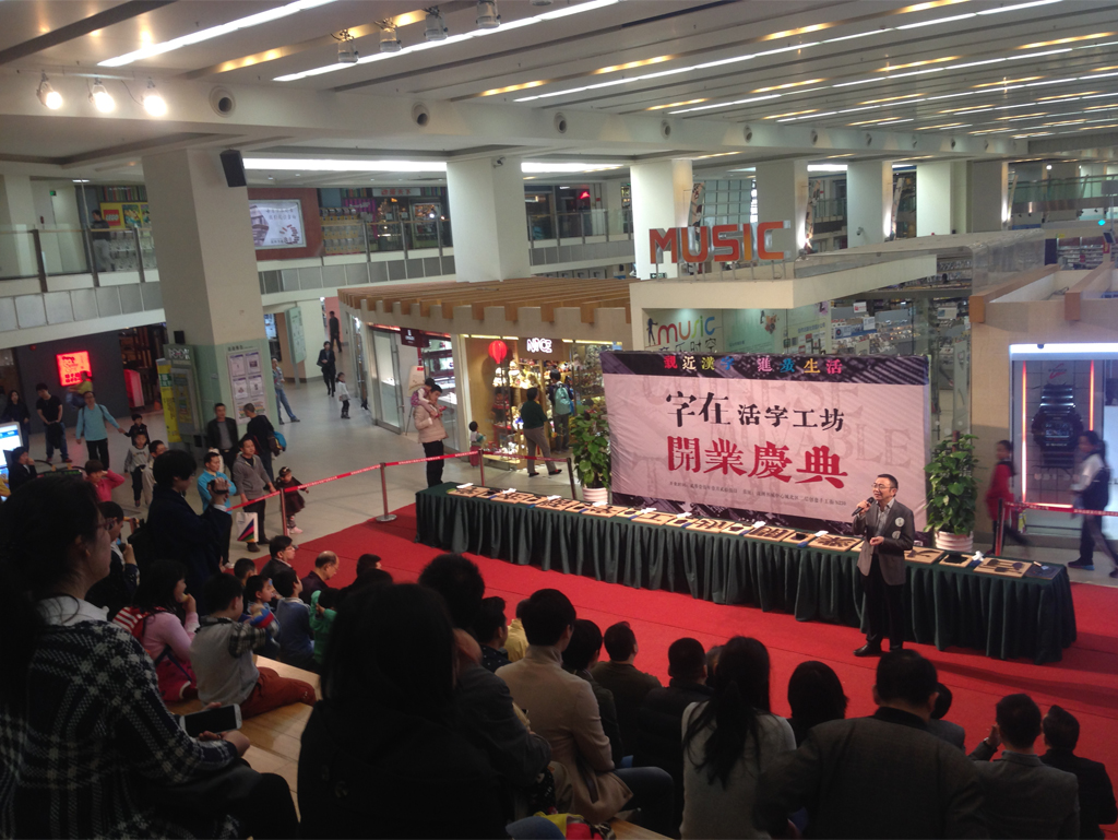 2015年1月25日,全新漢字體驗模式的「字在」活字工坊在深圳中心書城隆重開業啦!公司設計總監賀維先生、創意總監朱行奇先生受邀參加了開業儀式。「字在」創始人劉美松先生在開業儀式上強調:“活字有種集聚了五千年文明的力量,可惜現在我們對文字的感知只能停留在指尖輕輕劃落的那一瞬間,而活字工坊的存在可以讓這種觸摸變得樸實而有力量。”「字在」正著力打造一個集知識性、互動性、創新性的漢字“校外課堂”。